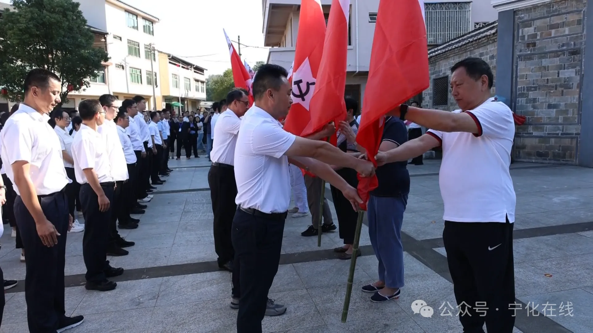 中央红军长征出发历史步道宁化段项目是长征国家文化公园建设国家级项目,包含淮土段、曹坊段两个部分,经历五年的规划建设,今天正式启用。刘学礼、叶继革、王盛泽、陈列平共同为“中央红军长征出发历史步道宁化段”揭牌。革命烈士或开国将帅的后代共同为三明市党员干部“重走长征路”活动授旗。11列队伍代表接过授旗,从凤凰山红军街出发徒步约5公里至仕边路口,重走红色之路,追寻革命先辈的足迹,身体力行感悟伟大长征精神,奋力走好新时代长征路。
