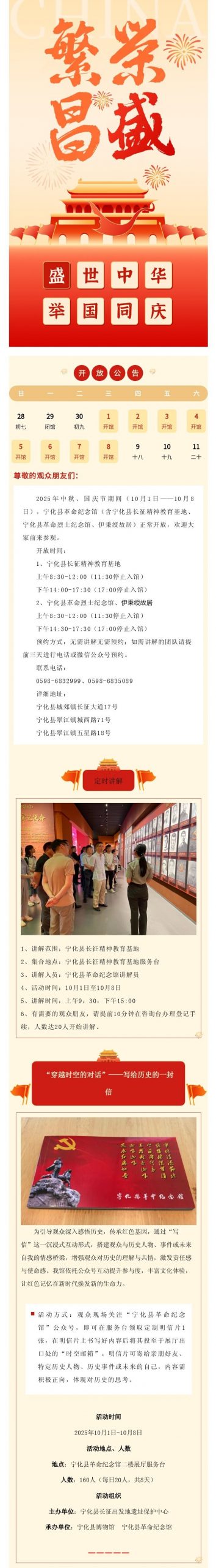 宁化县革命纪念馆“国庆·中秋”双节期间开放公告及活动安排