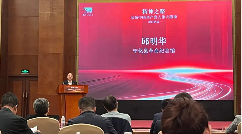 在研讨会上,宁化县革命纪念馆馆长邱明华对《研究和弘扬中国共产党人伟大精神的价值思考》进行了交流发言。